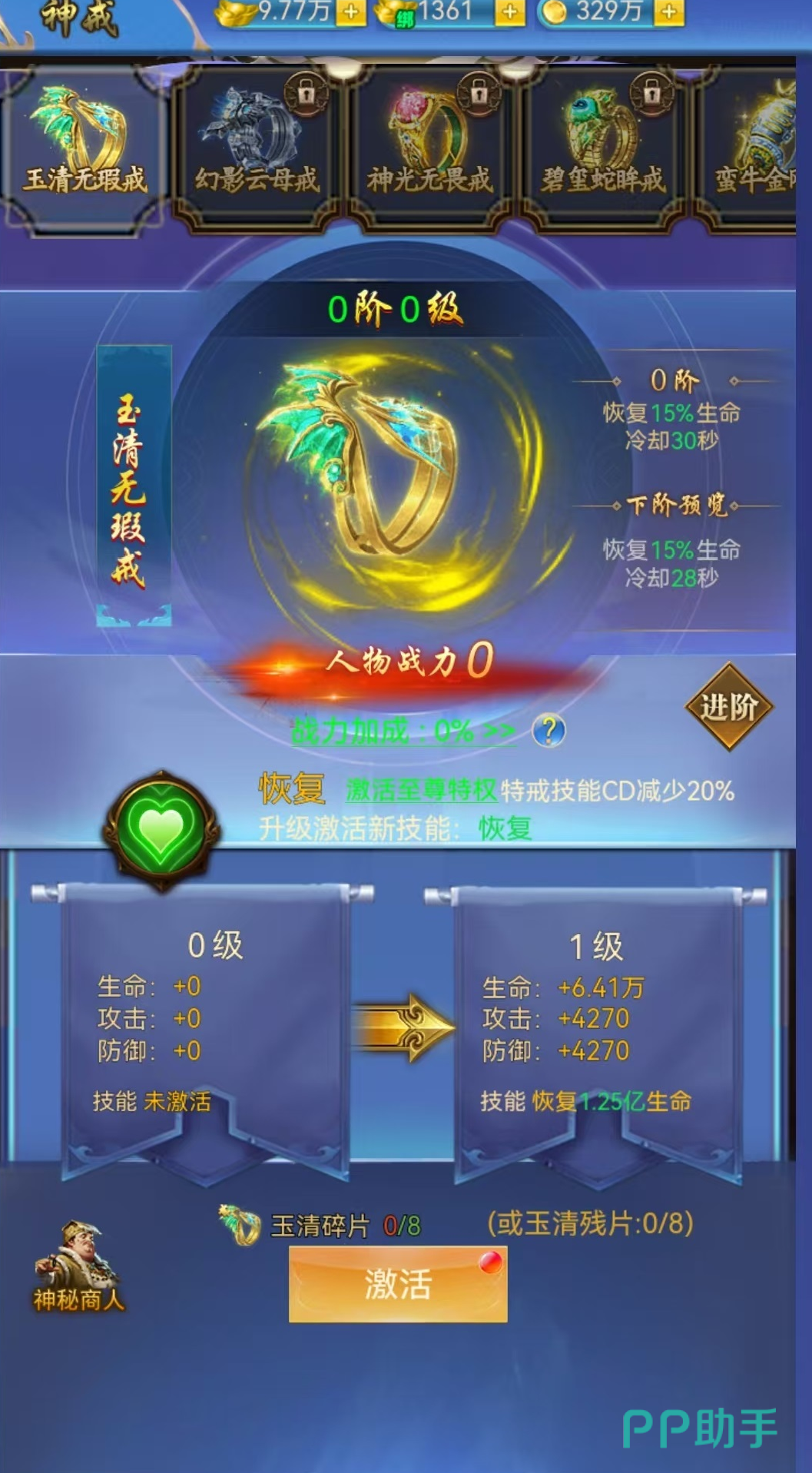 若想完整激活全部神戒,需要一定周期积累。每个神戒均配备专属技能,涵盖生命恢复、攻击力提升、防御增强等多种增益效果。激活后可通过收集对应碎片进行升级与进阶,进一步提高整体战斗力。神戒碎片可在神秘商人处直接购买,便于玩家灵活配置资源。进阶后的神戒不仅属性更强,技能释放效果也更为震撼,在各类战斗场景中都能发挥重要作用。