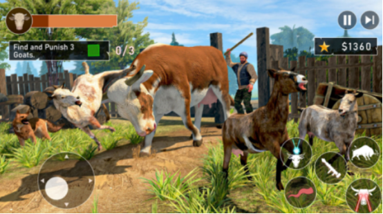 您在这里也将要扮演的是一头非常可怕的牛,因为经常勤恳地为农民服务,但可能没有收到最好的待遇,因此对于农民都产生了生气的情绪,想要利用自己的所作所为向农民报仇。您将会走入到偌大的农场当中,通过横冲直撞以及摧毁农场的方式报复农民,您还可以跟随其他的好友共同配合,完成自己的复仇任务。