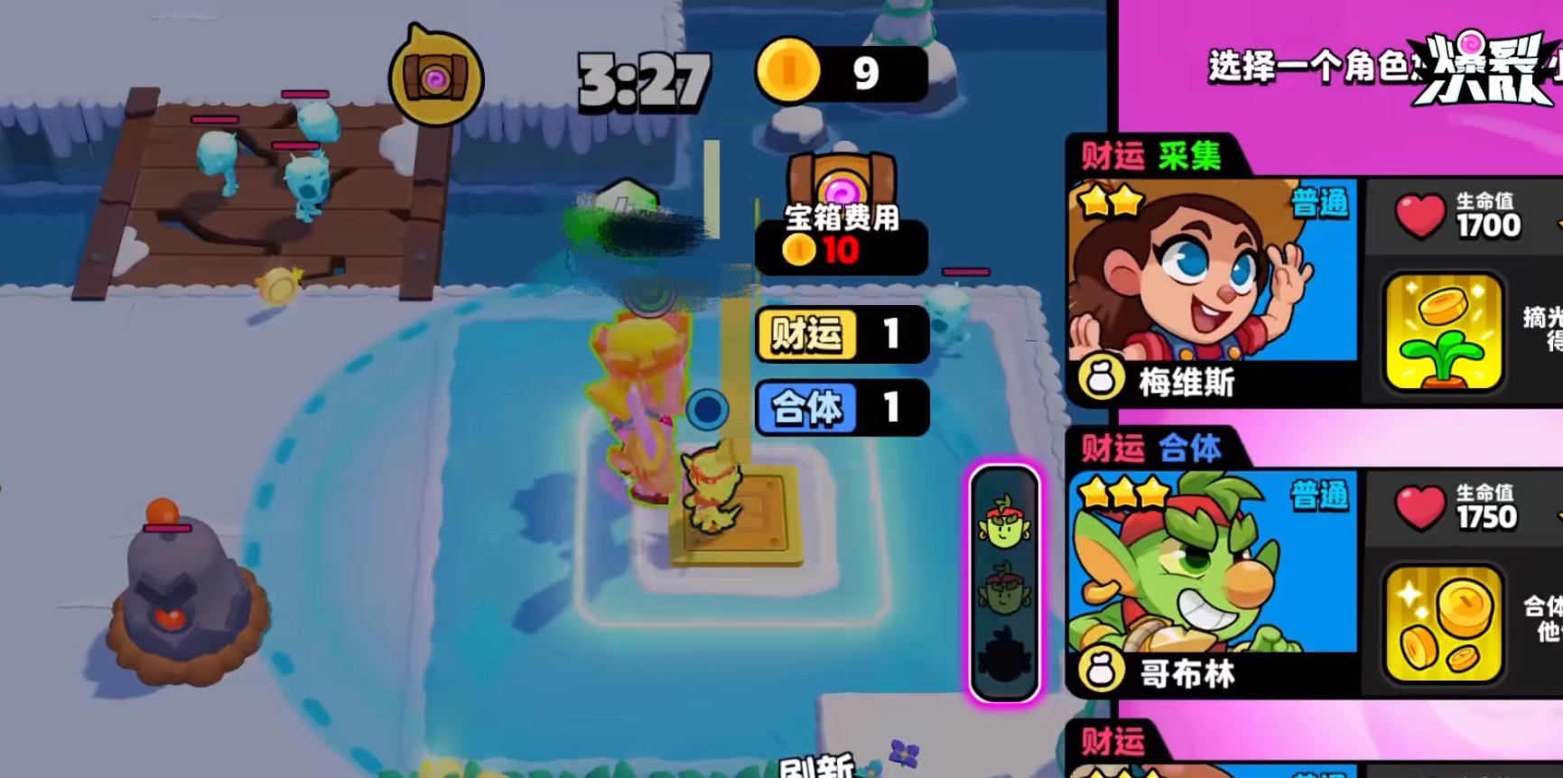 首先就是在游戏的核心玩法上,游戏采用了全新的战斗机制,每位玩家可以在游戏开始前随机选择三个不同的角色,然后组建小队去收集尽可能多的宝石来击败强敌。并且,每场游戏都包含了不同的随机事件,以及多变的地图,所以这就需要玩家根据当下的局势来及时调整作战策略。所以这里有个小tips,在选择角色时需要权衡一下每个角色的定位,以自己擅长的作战风格为出发点,来搭配出最适合的作战阵容。