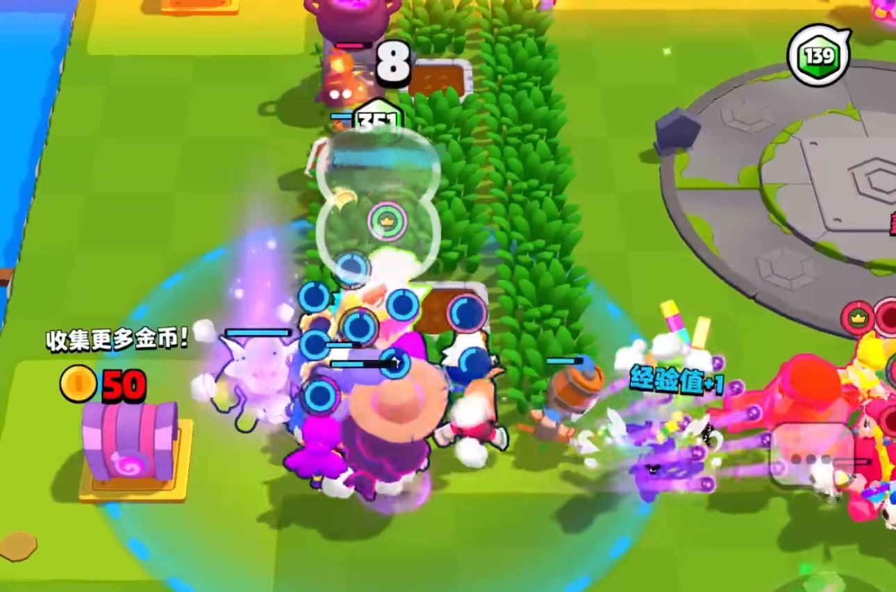 其次就是随机的增益buff和多变的地理环境大大提升了游戏的可玩性,比如有的地图可能会限制玩家的移动范围,有的地图还会增加额外的资源点等等。而玩家则需要根据这些不定因素快速做出决策,做好战略调整,找到致胜的关键。而且每局游戏时长只需要4分钟左右,简单直接,让玩家不再有时长焦虑,空闲时就可以轻松体验一局,不需要长时间的沉浸于游戏中。