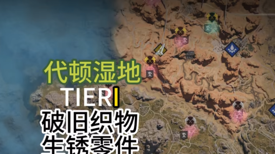铁锈这里总共有四个采集的区域,在这个四个区域中我们能收集到防火塑料、碳钎维织物、钒结晶以及零件等,当然铁锈河这里也有着矿产的,这里的矿产为铁矿,稀有的矿产依旧是银矿,矿产可以前往里奇收容附近采集,其他材料的话,只要在小地图上看对应的图标就行了。