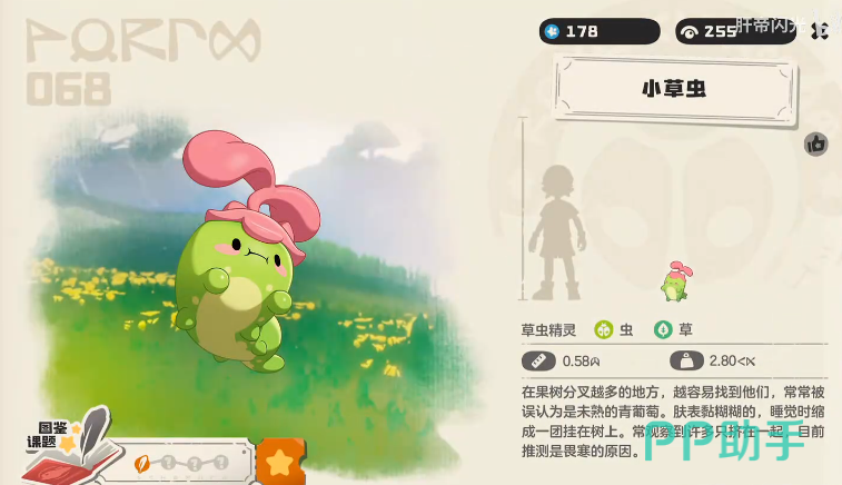 等天气变阴之后,出生点旁边的精灵,就会从一窝蜂变成小草虫,玩家可以靠近对方,通过精灵战斗,然后用咕噜球抓捕起来,小草虫是精灵的初级形态,在进化之后会变身成为草衣虫,角色可以直立行走,并且整个头部都会变成粉色,精灵的生命值是非常高的,但是物理攻击和速度相对来说是比较低的,可以通过提升等级的方式让角色的各项数值也能得到提升。