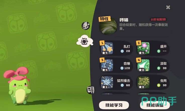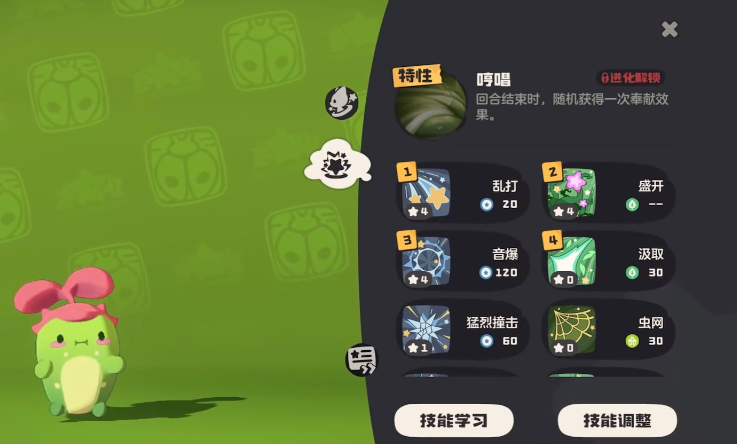 小草虫进化之后可以解锁特性哼唱,每一次回合结束的时候,都可以随机获得一次奉献效果,在角色进化之前可以用比较基础的虫网、乱打或者是音爆这样的技能向对方发起进攻,等级虽然不高,但捕获难度也比较低,如果玩家想收集这些精灵角色,那就可以按照上面的路径前往指定的位置寻找。