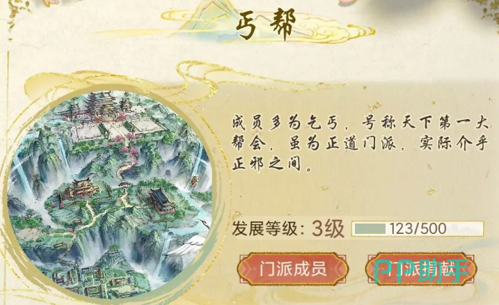 前朝遗孤则更适合注重剧情体验的玩家,该身份附带专属情感线和独特事件,并提供一笔可观启动资金,可用于购买丹药或装备。结合游戏内锻造与经商系统,甚至可在前期建立稳定收入来源,是擅长资源规划者的理想之选。在宗门方面,各大门派各具特色,策略深度显著。丐帮以低消耗精力换取持续铜币收益的乞讨机制著称,对缺乏初期资金的新人玩家极为友好,虽后期输出偏弱,但前期经济支撑作用无可替代。