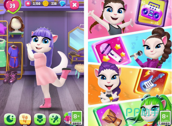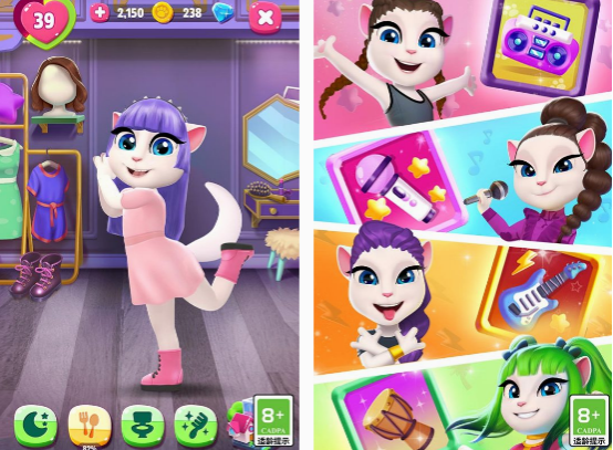 这款你将与里面的小猫咪,安吉拉进行互动的小游戏,有着清晰又可爱的风格进行设计,里面的小猫咪长相,除了很漂亮,也非常的可爱。既能通过与它共同玩耍的方式培养感情,也能满足它日常的需求。比如梳洗打扮,或者是给它吃食物等,还支持户外探索。无论玩家想要在游戏中做什么样的事情,都能点击屏幕完成,有着极高的自由度以及有趣的玩法。