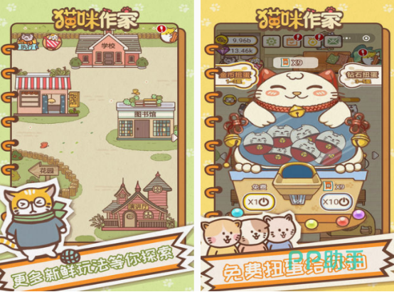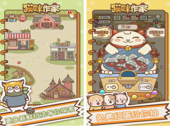 这是以模拟经营玩法为主的游戏,通过成立猫咪工作室以后,完成猫咪想要成为作家,不断写小说这方面的需求。游戏涵盖了超多可爱的小猫咪形象,既能通过招募的方式,获得更多的资源,也有无限养殖小猫咪这样的玩法,帮助你享受撸猫所带来的快乐,也有新鲜的玩法。通过探索的方式,你都能进入其中,使小猫咪顺利完成写作。