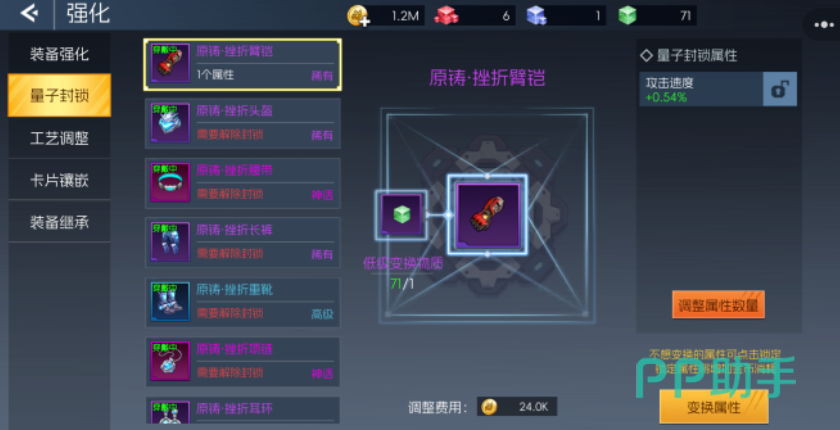 为了避免因强化失败而导致等级降低,玩家可使用强化保护剂进行防护。该道具不仅能防止降级,还能累积保护进度,当进度达到100%时,下一次强化必定成功。此外,量子封锁系统也是重要的属性加成途径。通过解锁粒子获取额外属性加成,进一步增强角色战斗力。