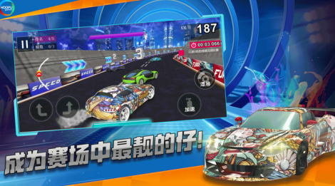 如果你已准备好挑战,赶快参与其中,只需轻轻点击屏幕就能疯狂的漂移,可改造属于你的专属座驾,与众多对手展开竞速,在真实的轰鸣引擎身下,感受高速超车的无限快感。驾驶操作较为简单,大部分新手也能轻松驾驭,只要点击方向键,选择不同的车道就能轻松获取道具,还能够极速超车。玩家一定要学会抓准时机踩踏油门,合理使用飘空与氮气喷射最终快速到达终点。