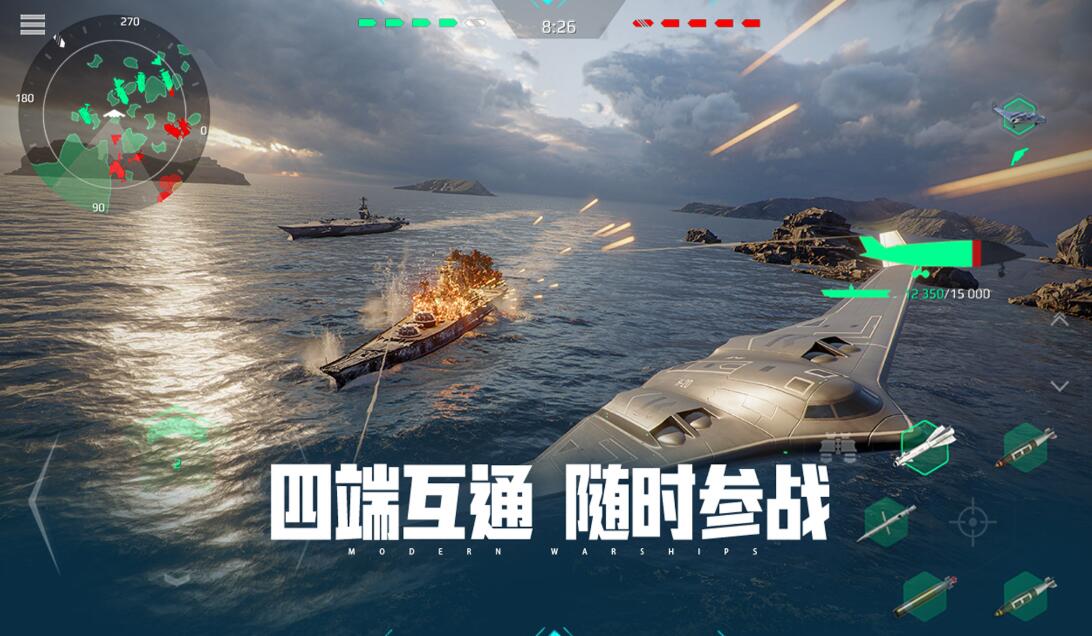 游戏以团队竞技为核心,玩家可选择加入驱逐舰、潜艇、航母等不同舰种,在开放海域地图中展开5v5或10v10对战。除了传统舰炮导弹互射,还可操作舰载战斗机、反潜直升机等支援单位,实现海空协同作战。局内支持实时语音指挥,提供良好的战术配合与战场临场感。