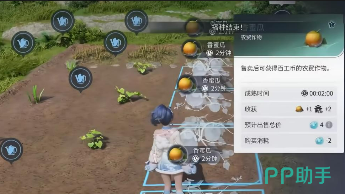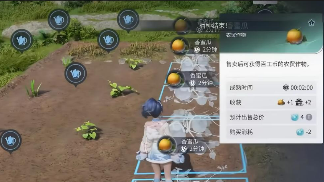 家园系统开启后,市集区域将固定出现一名常驻商人,每日稳定在岗,无需等待刷新。该商人承担三项基础职能:收购成熟作物、出售各类家具、回收闲置建材。玩家可将香蜜瓜等高等级作物提交兑换,获取百工币、基础建材或家具随机盒;不同作物对应兑换产出存在差异,等级越高,单次收益越优。需特别注意:作物兑换设有每日及每周上限,超额种植无法超额兑换,建议按需培育,避免资源积压。