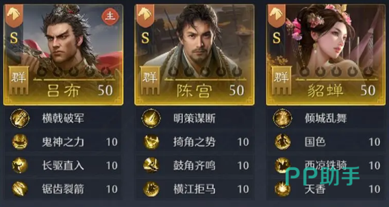 吕布主动骑推荐配置为:主将吕布(骑兵)、辅助貂蝉、谋士陈宫。其中貂蝉需携带具备减伤效果的战法,用于提升前排容错;陈宫则承担怒气回复职能,确保吕布高频释放“破军”,维持无双层数与暴击覆盖率。该阵容爆发迅猛,适合速战速决场景。