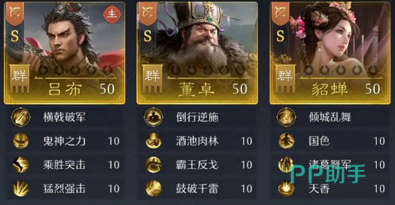 吕布追击弓则采用弓兵兵种,搭配董卓与貂蝉组成。此阵容以吕布弓形态的连击率为基础,结合弓兵专属兵种技进一步放大持续输出效率;董卓提供前排抗压能力,貂蝉补充生存支援,整体容错更高,面对敌方集火时表现更稳健,适用于持久战或对抗高爆发阵容。