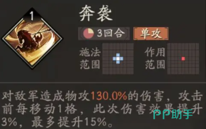 建议玩家至少将吕玲绮的天赋培养至7阶以上,方可充分发挥其潜力。在此基础上,技能选择方面推荐优先考虑奔袭,这是一项性价比极高的通用型单体输出技,技能系数接近150,释放节奏与“风驰电掣”高度契合,既能保证稳定输出,又能充分利用其高机动优势进行连续打击,形成高效的连招循环。