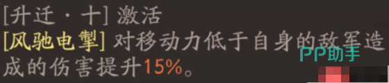 进一步培养至升迁10阶段后,吕玲绮还将解锁一项强力被动:当自身移动力高于目标敌军时,可获得15%的伤害加成。这一效果在PVE环境中极易触发,尤其面对移动力固定为4的步兵单位时几乎稳定生效。因此,当前多数玩家选择将其定位为物理输出核心,围绕此特性构建专属阵容。由于该增益有明确触发条件,其后期养成路线相对固定,需重点强化速度与攻击力属性。