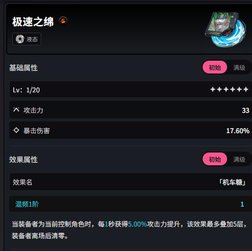 “极速之棉”则聚焦暴击伤害补强:基础属性组合为攻击力+暴击伤害,成长曲线平滑且线性稳定。满级后可为角色提供扎实的爆发阈值提升,尤其适用于暴击伤害面板偏低、但具备高暴击率或速攻节奏的角色。无论采用速攻压制流还是瞬发爆发流,该武器均能有效拔高单次技能或普攻的伤害上限,增强节奏转换阶段的压制力。