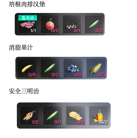 第六款安全三明治。可直接使伤害降低20%。有黄油变异小麦各两份,变异黄瓜一份。