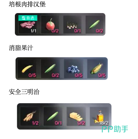 第四款肉排汉堡。需要变异洋葱和肉各一份,变异黄瓜和变异番茄各两份。在服用后采矿和伐木可快速完成,且持续时间长达10分钟。