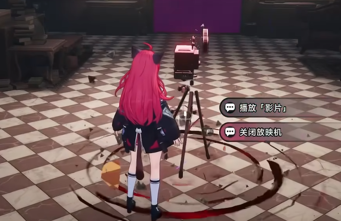 二楼房间内设第二台放映机,功能逻辑反转——此处需点击“关闭”指令。执行后,原本阻隔前路的不可见屏障解除,通道重新开放。注意:误触“播放”将无响应,须严格按场景提示操作。