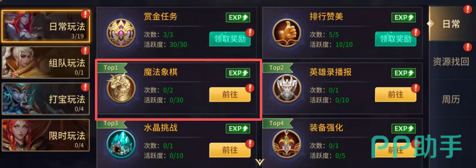 魔法象棋还深度绑定游戏活跃度体系。每次成功找回,均可获得30点活跃度积分。当当日活跃度累计达50点或100点时,系统将自动解锁对应档位的活跃宝箱,内含钻石、装备强化石、稀有符文等关键养成资源。因此,参与魔法象棋不仅是经验来源,更是达成每日活跃目标、激活全阶段奖励的核心路径。