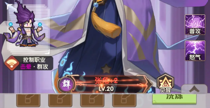 张角承担法术群攻与群体控制双重职能。普攻即可覆盖多名敌人,清场效率优异;怒气技作用于敌方全体,首次释放时高概率触发击晕,后续释放虽概率递减但仍具干扰能力。其技能组合能高效压缩敌方行动节奏,为己方主力输出创造安全输出窗口。