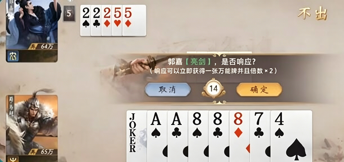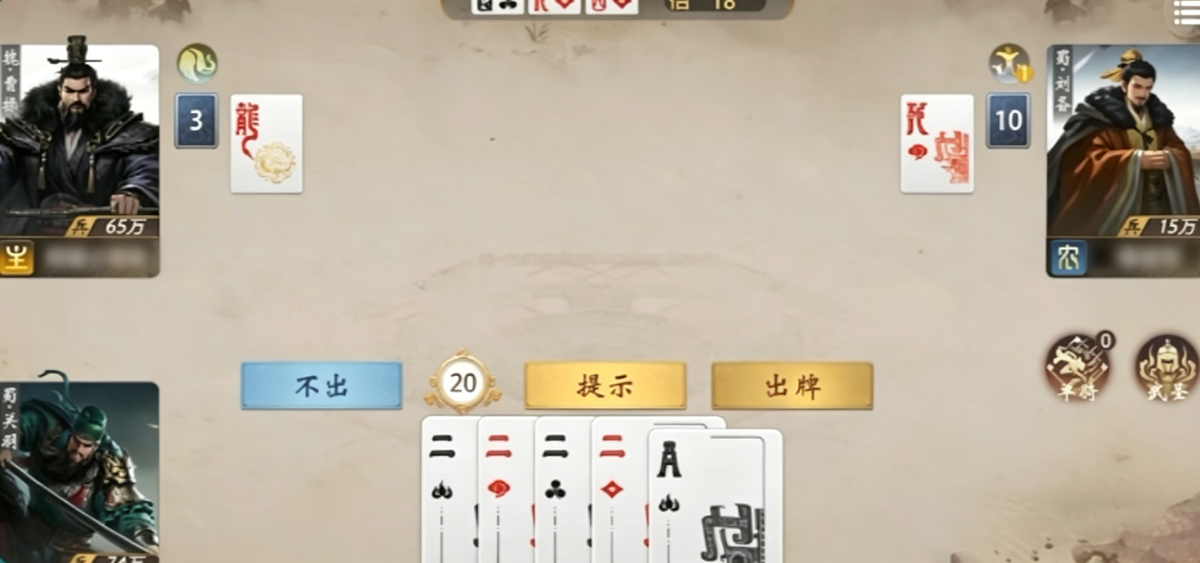 此外还存在若干武将协同隐藏体系,虽使用率偏低但战术价值突出。典型如郭嘉与关羽组合,利用关羽“武圣”对特定牌型的压制力,迫使对手回避顺子及大点数出牌,陷入被动拆解困境;另一变体为郭嘉搭配诸葛亮,借其“空城”或“观星”辅助调整牌序,进一步强化遗计发动稳定性与时机把控精度。