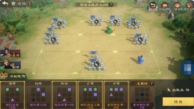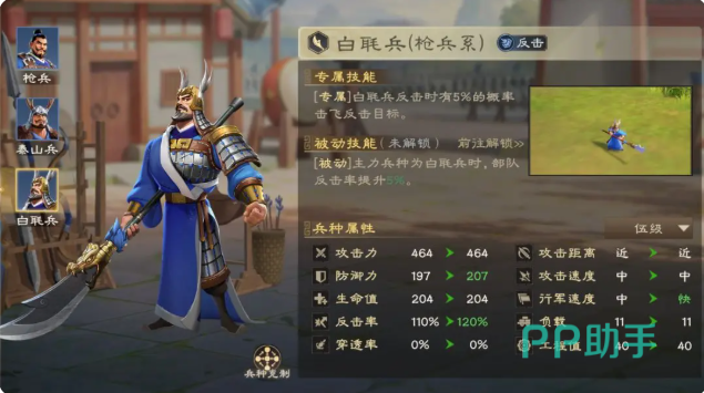 该阵容尚有进一步优化空间,关键在于兵种与阵法的选择。推荐使用白毦兵作为主力兵种,其特有的反击率加成可有效提升全队反击频率;阵法方面,“冲轭阵”为最佳搭配,能够显著增强反击造成的伤害输出。此外,技能等级的提升也不容忽视,尤其是关羽的核心被动技能,作为依赖反击机制的关键环节,其等级直接影响整体作战效能。