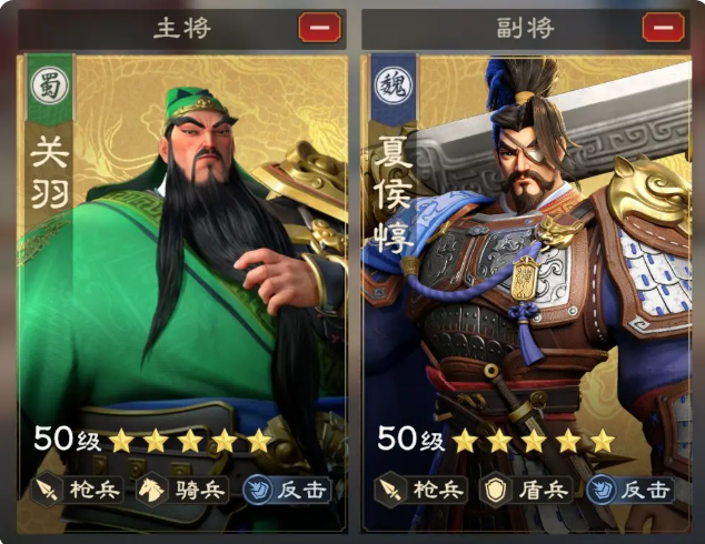 实战中,该组合对骑兵单位具备较强抗性,得益于夏侯惇的高防御属性与队伍整体的反击体系。只要为关羽争取到足够的输出窗口,便能确保稳定的伤害输出。在阵地防守类战斗中,应重点关注关羽主动技能与白毦兵反击加成的联动效应。即便敌方率先建立优势,夏侯惇在低血量下激活的被动仍能提供强力减伤与反伤能力,配合关羽不断积攒怒气,逐步扭转战局。