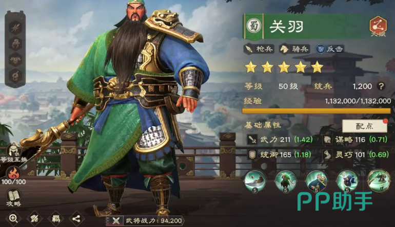 首先来看关羽的表现。从基础属性分析,他具备1.42的武力成长值,在同类型武将中物理输出能力突出,适合走反击路线。其主动技能以旋转攻击为核心,能对范围内的敌人造成持续伤害,并附带击退效果,不仅可打乱敌方站位,还能为后续反击创造有利条件。此外,关羽的普通攻击拥有回怒机制,每次普攻有一定概率恢复自身怒气,使得他在战斗中能够更频繁地释放主动技能。当怒气值累积至500以上时,其被动技能将大幅提升穿透率,进一步增强输出效率。