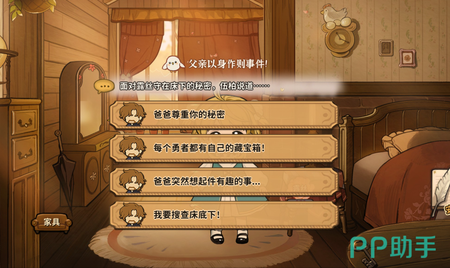 在具体月份事件中,1月开启藏宝箱时选择“尊重秘密”,可提升温柔与善良两项属性,有助于增强女儿的情感理解力与人际亲和度;2月于餐厅场景中选择“聊聊章鱼祖先”,则能增加博学值,该属性直接关联她对世界运作规律的认知水平和解决问题的能力。