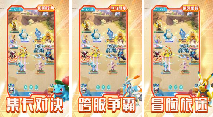 这是款把卡牌放置玩法跟宝可梦元素融合的佛系作品,你卡对决的特殊玩法考验大家的运气,全新呈现的宝可梦造型也给人耳目一新的感觉,自由搭配团队参与宝可梦争霸赛的设定也超级爽,自动化的冒险战斗流程让懒人朋友沉浸,冒险路途上可随机遭遇不同的宝可梦敌人,尽情放置卡牌战斗的理念也极具深度哟。