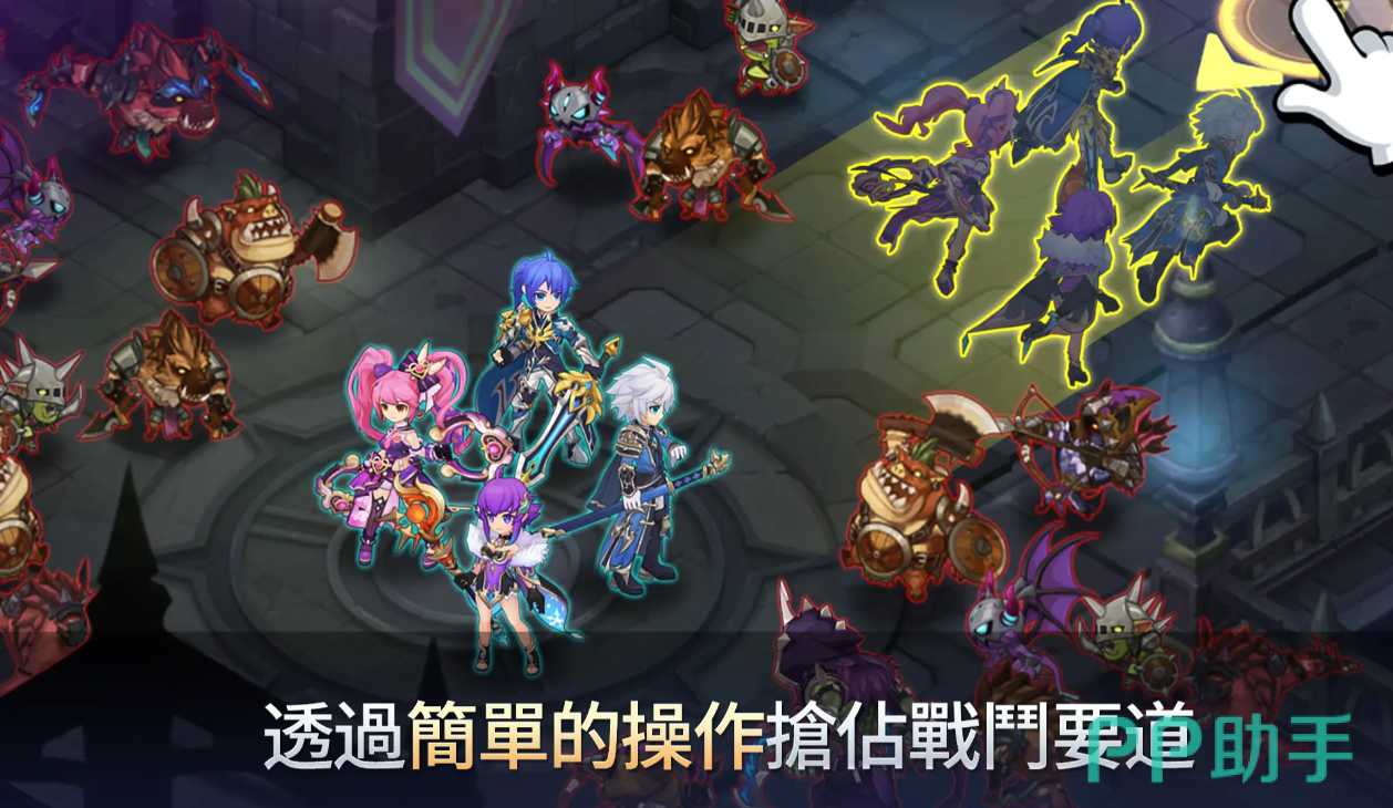 游戏当中玩家所需要做的操作指令只有三个,第一个是进行队列的集结,由于游戏当中的所有角色技能都是自由释放的,并且走位技能的优先级,如果玩家选用的是以攻击敌人为主,那么玩家所控制的角色就会自动被敌人吸引,为了保证战斗策略的稳定性,玩家可以使用集结功能。