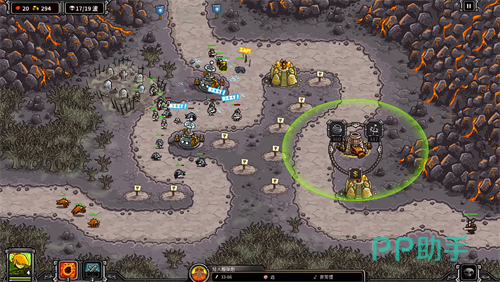 第二关:与第一关相似,只有一个路口。在转弯处合理布置小兵和后排炮塔是关键。及时使用佣兵进行支援,并记得给炮塔升级,增加杀伤范围和威力。