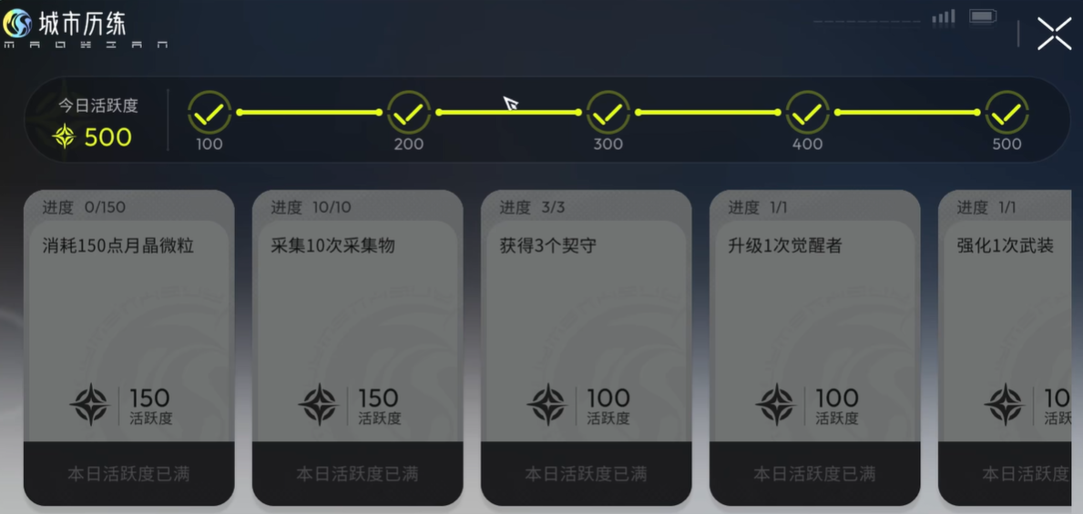 完成每日任务可累积活跃度,按档位分阶段发放奖励,如100/300/500活跃度对应不同梯度资源包。需特别注意:活跃度每日清零,务必在当日内完成领取,避免进度浪费。而世界手册中开放的“世界历练”任务则无时间限制,但任务难度显著提升,完成后可获得关键货币——声誉点,该数值为解锁高价值副本的必要条件。