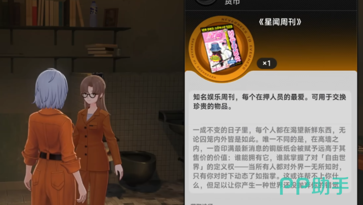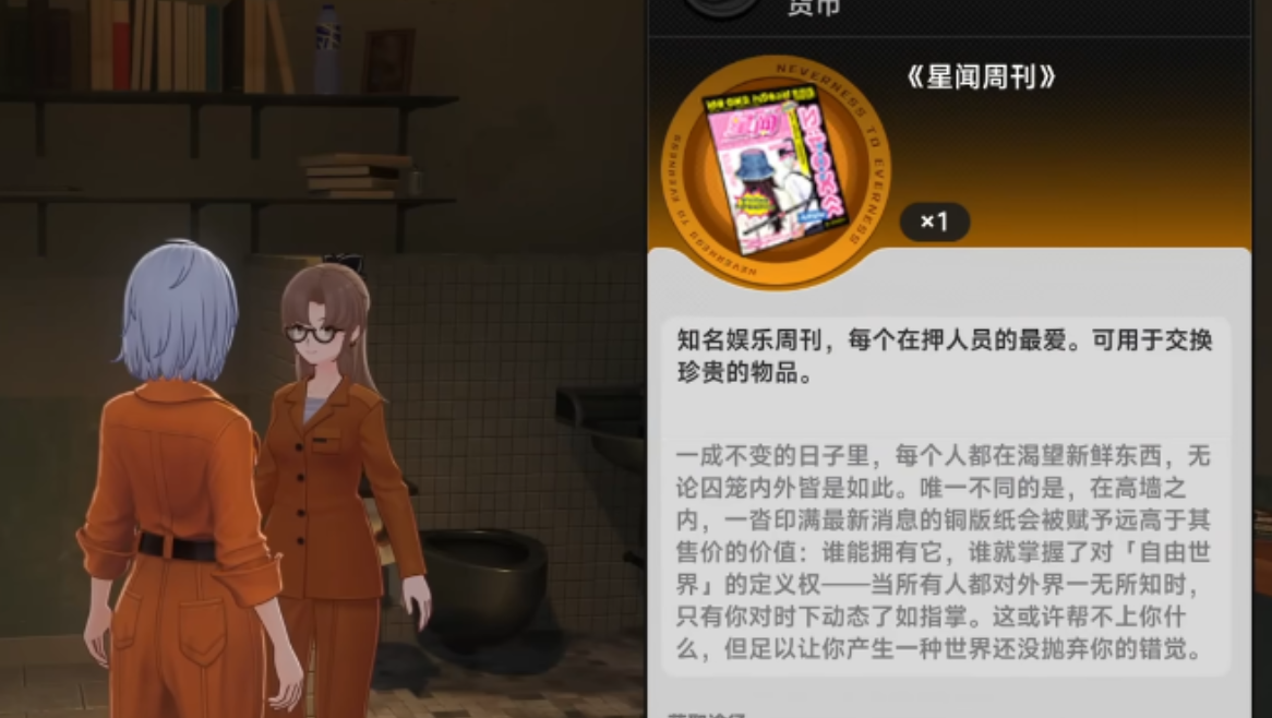 商店商品结构具备明确的功能分层。“囚衣”为稀有外观类道具,需消耗500蛛币购得,穿戴后不仅可作为出狱返城时的身份标识,更在后续越狱流程中激活被动效果——提升劫持囚车时的驾驶员说服成功率12%,大幅降低逃脱失败风险;“周刊”则属于功能性情报媒介,售价80蛛币/期,每周更新一期,内容涵盖狱警换岗规律、监控盲区地图、临时工坊开放时间等实用信息,是构建稳定监狱经济循环与玩家间非正式交易网络的基础载体。