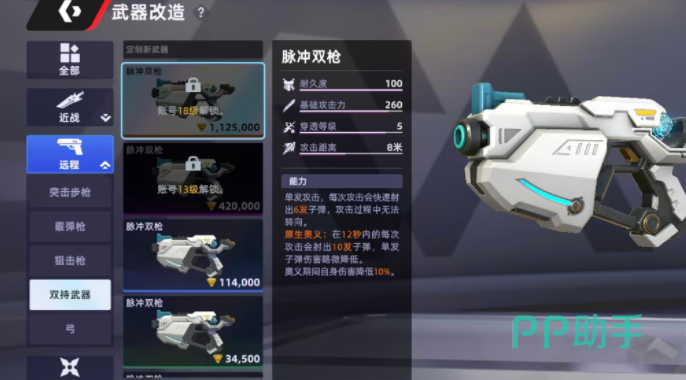 当前游戏内可部署的双持武器仅有一种,即脉冲双枪。该武器具备超远有效射程与卓越结构耐久性,适用于中远距离压制及持续火力覆盖。其核心机制为单次触发释放六发高速弹药,形成短时爆发性输出,在瞬息万变的对抗节奏中显著提升击杀效率。值得注意的是,射击过程中角色无法进行方向微调,这一设定大幅降低了瞄准操作门槛,尤其利于新玩家快速掌握武器使用节奏,实现稳定命中。