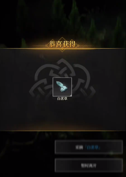白茗草在外形上具有明显特征,其叶片细长,易于辨认。当角色接近时,界面会自动显示采集按钮,点击即可完成收集。此草药在游戏中属于可重复刷新资源,允许玩家多次采集以满足需求。除了用于治疗和解毒外,白茗草还可作为交换物品提交给旅店店主,用以换取装备或其他有用线索,提升整体战力配置。