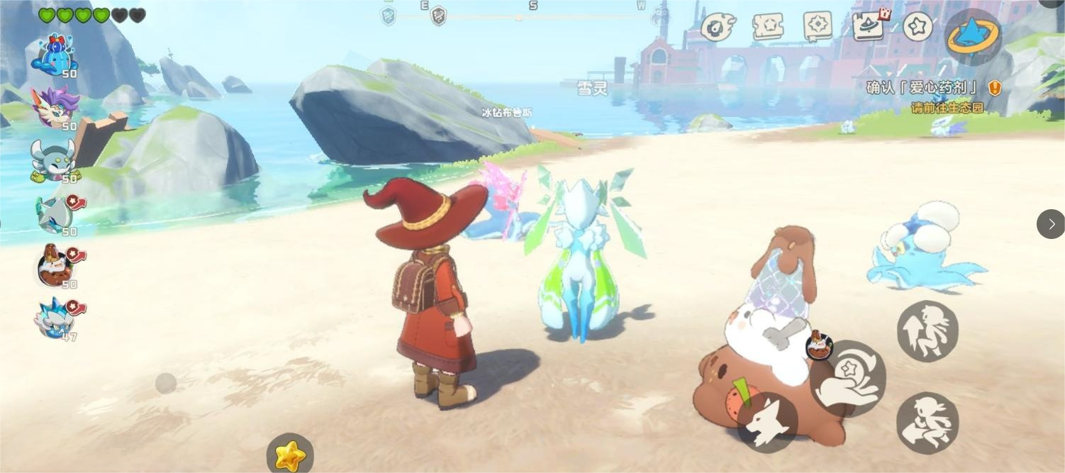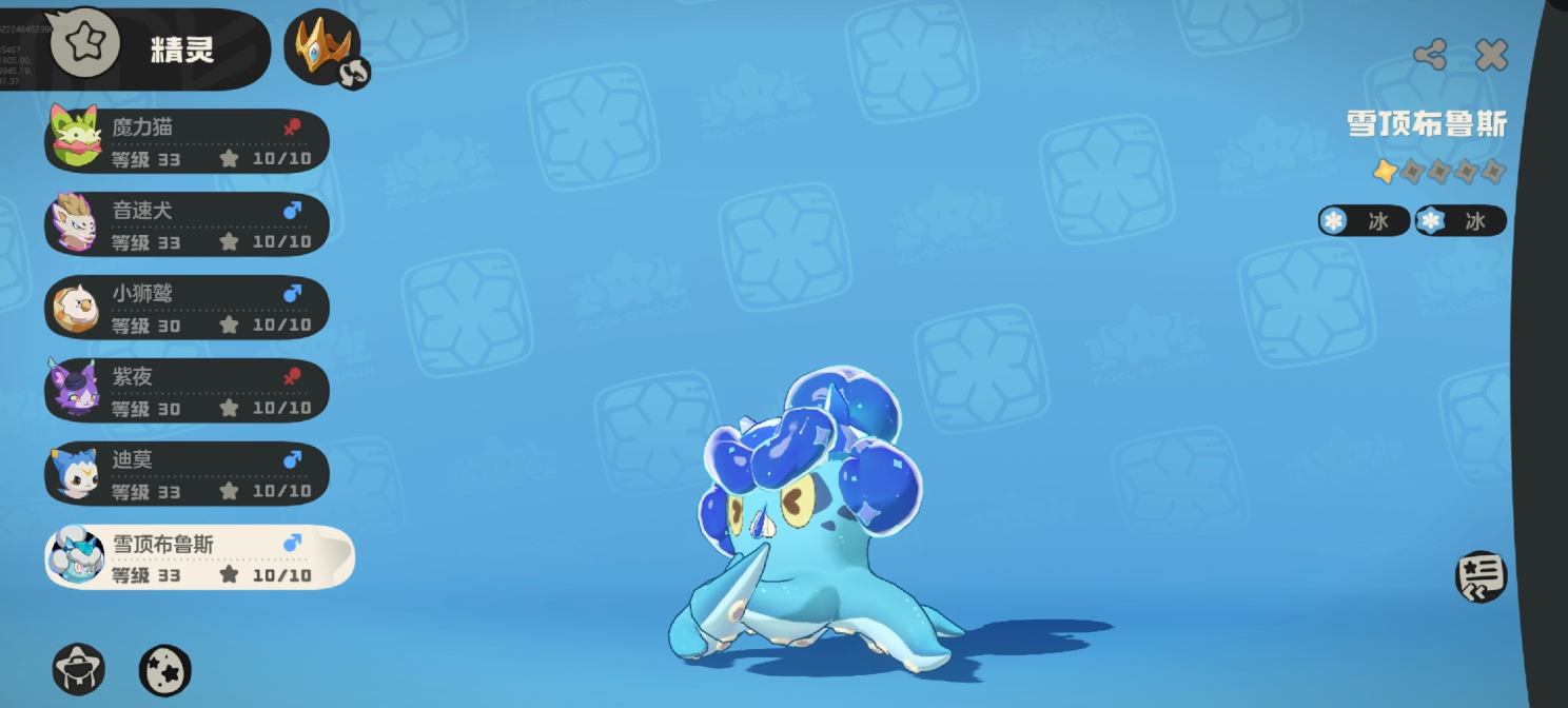 第二阶段进化体名为雪顶布鲁斯,相较初生形态体型明显增大,行动更为敏捷,甚至可在水面上短暂滑行,提升了捕捉难度。推荐使用“星星魔法”技能将其击晕后进行封印,提高成功率。此形态已展现出更强的战斗潜力,是中期队伍中的优质选择。