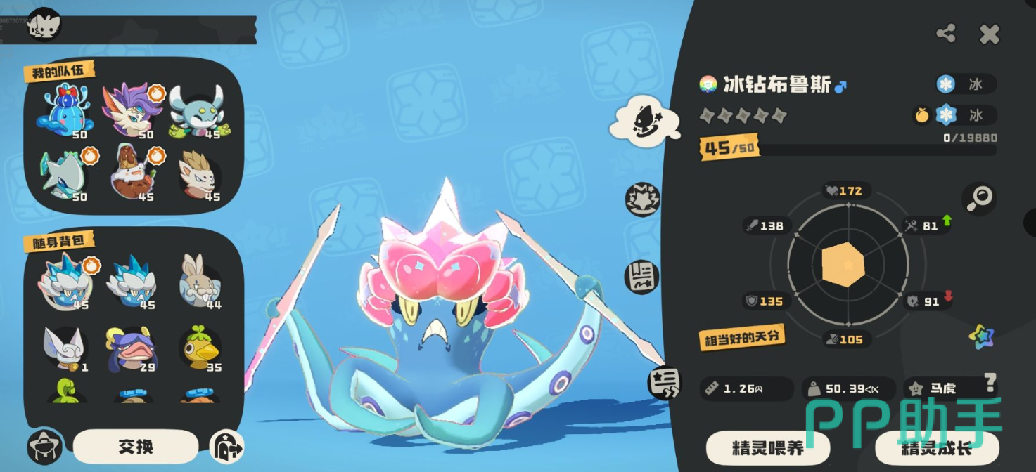 最终进化形态为冰钻布鲁斯,外观发生巨大转变,身体变得更为庞大,通体覆盖晶莹剔透的冰蓝色晶体,头部生长出闪耀寒光的钻石状结晶。作为海滩地带的顶级野生精灵,不仅战斗力强劲,还能大幅提升主人在水域地形的移动效率,甚至能牵引角色快速渡河。建议先用“星星魔法”控制其行动,再配合高输出精灵如火神音速犬实施精准打击,以确保捕获成功。