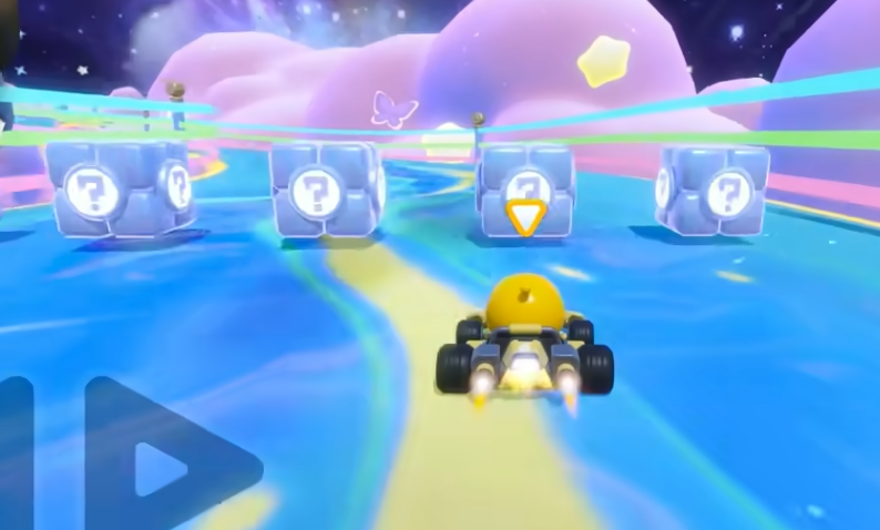 玩法以道具驱动型竞速为核心,支持多种参与形式——包括单人挑战、双人协作及四人组队;对战规模最高可达8人自由混战,亦开放2V2或4V4团队对抗模式。在赛道行进过程中,玩家将随机经过道具箱,拾取即时生效的随机道具,提升策略维度与临场变数。