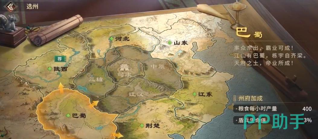 目前游戏中开放了六个主要出生地:河北、山东、荆楚、江东、陇西以及巴蜀。每个地区都有其专属的资源加成与兵种强化效果,玩家需结合自身发展节奏与战术偏好做出最优选择。