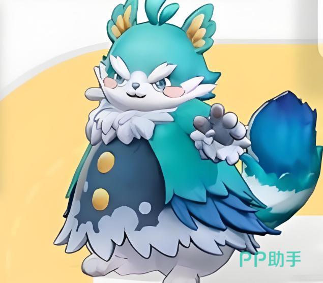 外观设计上,风翎熊采用清新蓝为主色调,体表覆盖蓬松白色绒毛,形似柔软羽毛球;尾尖呈现蓝渐变效果,双颊点缀浅粉色腮红,神态兼具酷感与萌态。耳部与胸前羽毛结构清晰、层次丰富,强化了视觉识别特征。