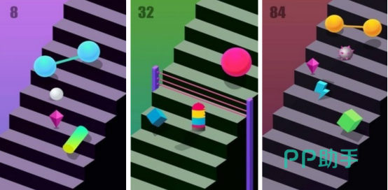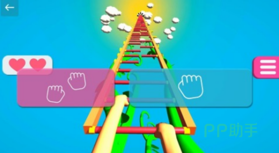 色彩丰富的画面,再搭配上简单的操作方式,核心的要求就是通过攀爬天梯的方式向上冲,玩家爬得越高,获得的分数就会越高。看似很简单的玩法,但是却比较考验玩家的观察能力,要仔细观察天梯的情况,因为很有可能会出现断开的情况,避免摔下悬崖。顺利完成闯关之后,就能解锁更多的炫酷皮肤,还有多样化的玩法。