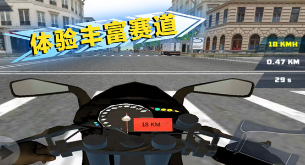 你将化身专业骑手,驾驭各类高性能摩托驰骋于壮丽场景之中。游戏不仅考验玩家的操控技术,更注重策略性改装升级,通过不断优化车辆性能、解锁顶级座驾,逐步从新手蜕变为赛道王者。复杂多变的赛道环境将带来极具挑战性的驾驶体验,每一个弯道都可能是胜负关键,唯有兼具精湛技术与精良装备的玩家才能最终登顶冠军宝座。