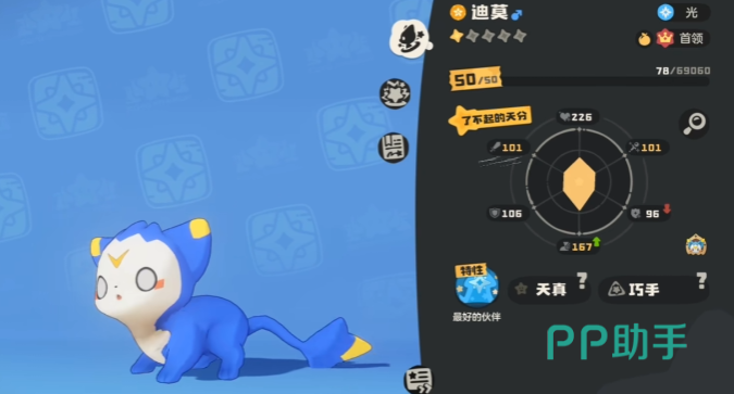 迪莫作为具有代表性的进阶型精灵,其培养过程更为复杂。首先需要将其等级提升至30级,相较于基础精灵而言升级周期更长,需频繁参与副本挑战或完成日常任务积累经验。此外,仅达成等级要求并不足以触发进化,还需收集专属进化道具,此类物品通常来源于特定副本掉落、地图采集点或限时活动奖励。进化后的迪莫将解锁光系专属技能,部分强力技能甚至需配合特定血脉配置或辅助装备才能完全发挥威力。整个养成流程帮助玩家逐步掌握等级管理、资源调度与技能搭配等核心玩法,为后续驾驭更高级精灵打下坚实基础。