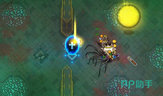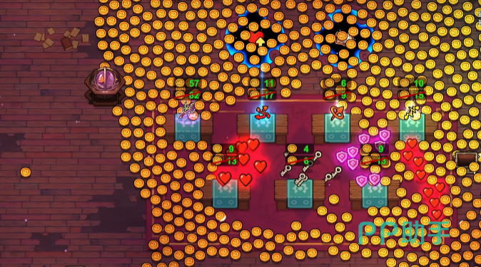 另一种高效的位移方案是使用黄老丙套装,其效果允许玩家瞬移到任意位置拾取硬币,极大提升了机动性。此外,在构建该流派前,需确保起始金币充足,否则难以支撑前期发育。推荐配置淘金者手套与淘金者金杯,这两件装备可在击杀敌人后额外获取其掉落的硬币,保障资源稳定。同时,务必装备淘金者的软夹,每次拾取硬币时均可恢复一定生命值,形成“丢出—回收—回血”的良性循环,大幅提升生存能力。