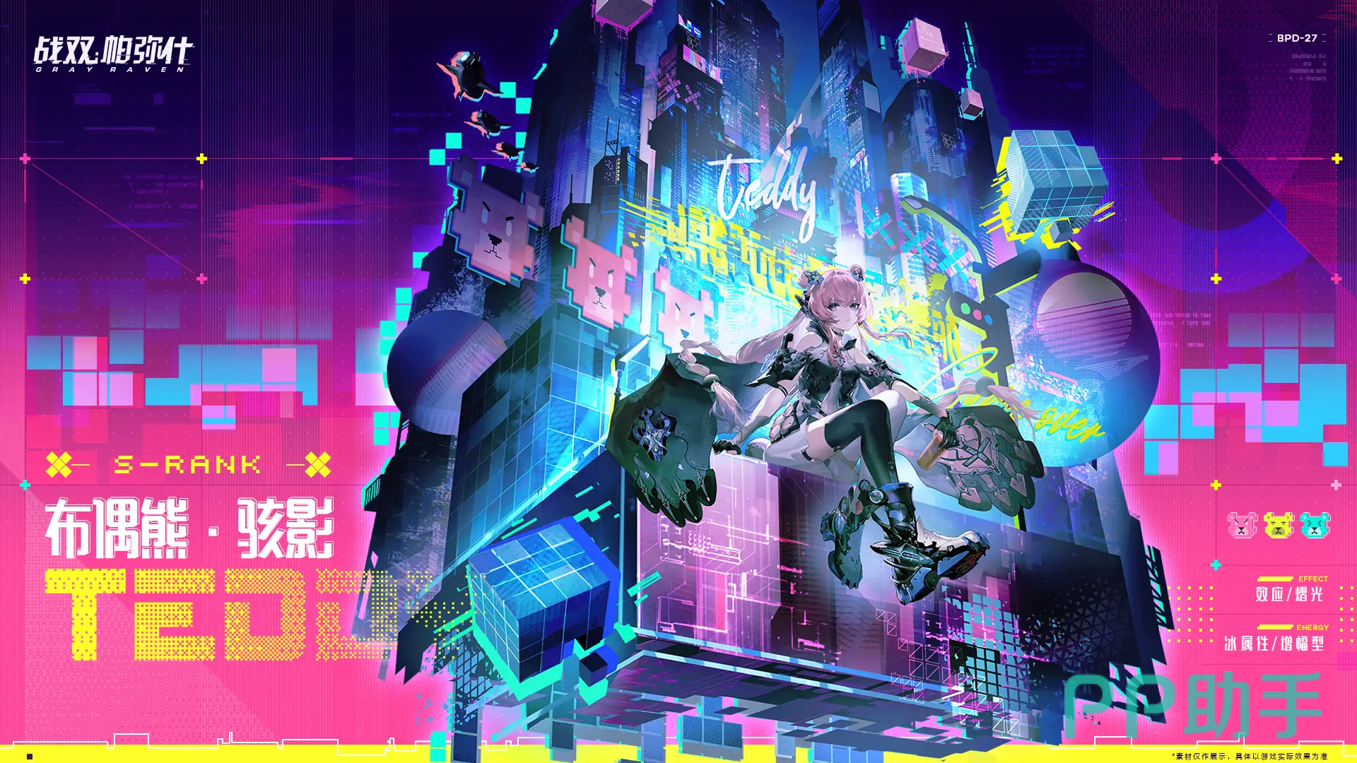 布偶熊·骇影是《战双帕弥什》中即将实装的全新S级泛用型构造体,定位兼顾团队增益与冰属性持续压制。其外观融合萌系布偶熊元素与赛博朋克风格设计,在视觉表现上兼具辨识度与亲和力。技能体系围绕“数域空间”机制构建,核心逻辑在于通过空间内外状态切换,调控信号球获取规则、伤害形态及队友协同效果。