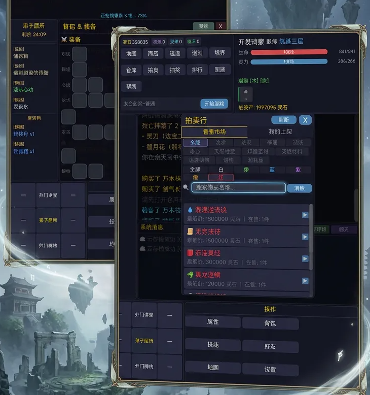 游戏初期阶段,建议优先探索地图全区域,集中收集高价值物资。所获物品可在内置拍卖系统中竞价出售,快速积累修仙资本,用于购置关键道具、强化装备或兑换稀有资源,形成可持续成长循环。