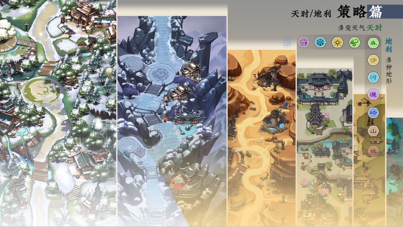 战场环境具备真实物理反馈逻辑:雨天会显著降低火攻类技能的命中率与伤害系数;雪地地形则会限制骑兵单位的移速与冲锋距离。玩家需结合天气预报、地形特征与敌方布阵,动态优化己方站位与技能释放节奏。