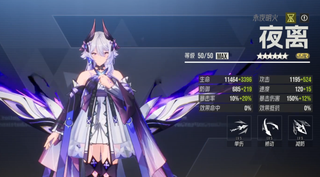 首先登场的是高爆发代表——夜离。作为队伍中的主力输出位,他在多个场景下均展现出极强的压制力。其基础普攻即可造成240%的伤害,并随着攻击次数叠加概率触发“窃取”效果,将敌方增益状态转移至自身。被动技“震蝶影”不仅大幅提升暴击伤害,还能额外追加一次普通攻击,在连击频率较高的情况下可迅速叠满被动层数,从而进入超高额伤害阶段。尽管后续触发几率略有衰减,但一旦成型,夜离便能在短时间内打出毁灭性输出,堪称全图打击的典范角色。