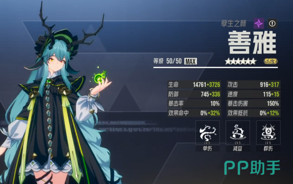 善雅则走的是群体压制路线,与其他依赖即时爆发的角色不同,她通过多层累积型伤害机制逐步瓦解敌阵。她的核心玩法在于持续为敌方叠加多阶段伤害Buff,当层数达到阈值后,将引爆全体范围的高额AOE伤害。此外,善雅本身具备较高的生命值与防御属性,能够在前线长时间站场输出。除了稳定的群伤能力外,她还具备一定的辅助治疗功能,可在关键时刻为队友提供少量回血支持,属于兼具生存与输出的复合型角色。